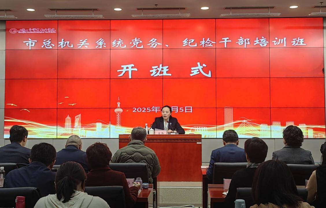 市总工会党组成员、经审会主任、直属机关党委书记庄勤出席开班式并作动员讲话,她指出,2025年,市总工会机关系统各级党组织和广大党务、纪检干部始终牢记“忠诚党的事业、竭诚服务职工”的职责使命,深入落实机关党建工作责任,坚持围绕中心、建设队伍、服务群众,埋头苦干、直抓实干,在大家的共同努力下,各项工作取得了好成绩,机关党建工作持续保持良好发展势头,政治引领得到新加强,组织建设实现新提升,服务中心展现新作为,基础工作取得新进步,模范机关收获新成效,精神面貌焕发新气象。她希望机关系统广大党务、纪检干部要切实提高政治站位,充分珍惜这次集中培训的机会,静下心来、潜心学习,深入思考、相互交流,力求在理论武装上有新收获,在业务能力上有新提升,在纪律作风上有新加强,切实把学习成果转化为谋划工作的思路、推进工作的举措、解决问题的能力,努力成为政治上的明白人、党建工作的内行人、干部职工的贴心人,以更坚决的态度、更扎实的举措、更有力的行动、更严实的作风,推动机关系统党的建设再上新台阶,为服务中心大局作出新的更大贡献。