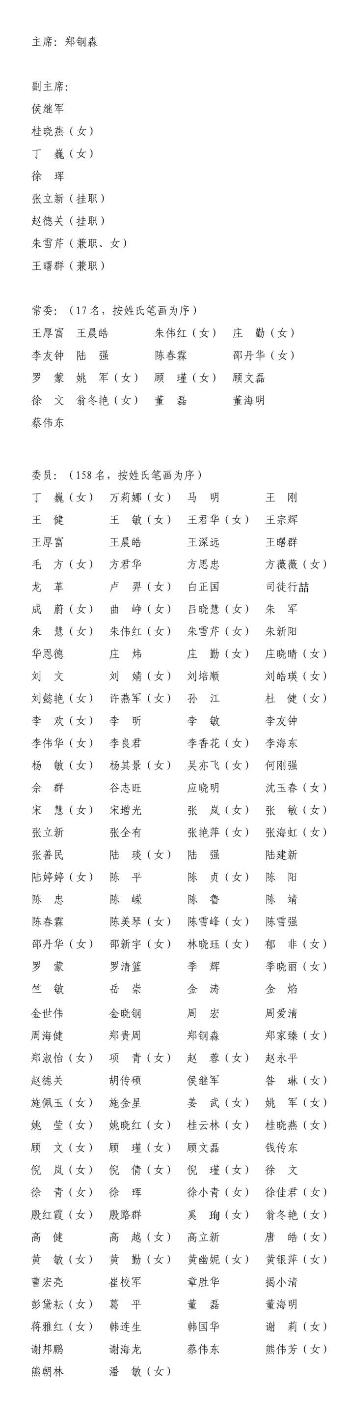 上海市总工会第十五届委员会主席、副主席、常委和委员名单