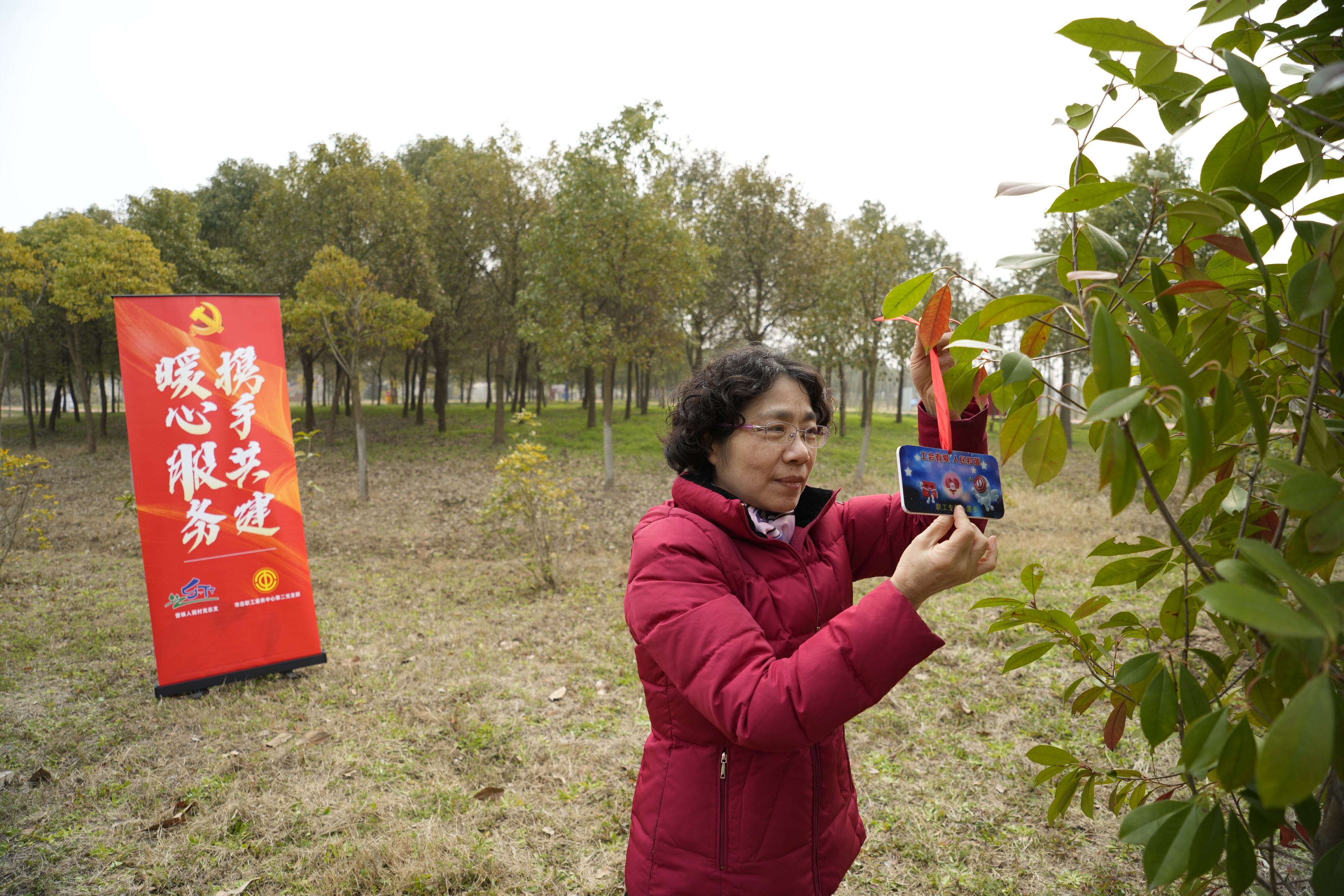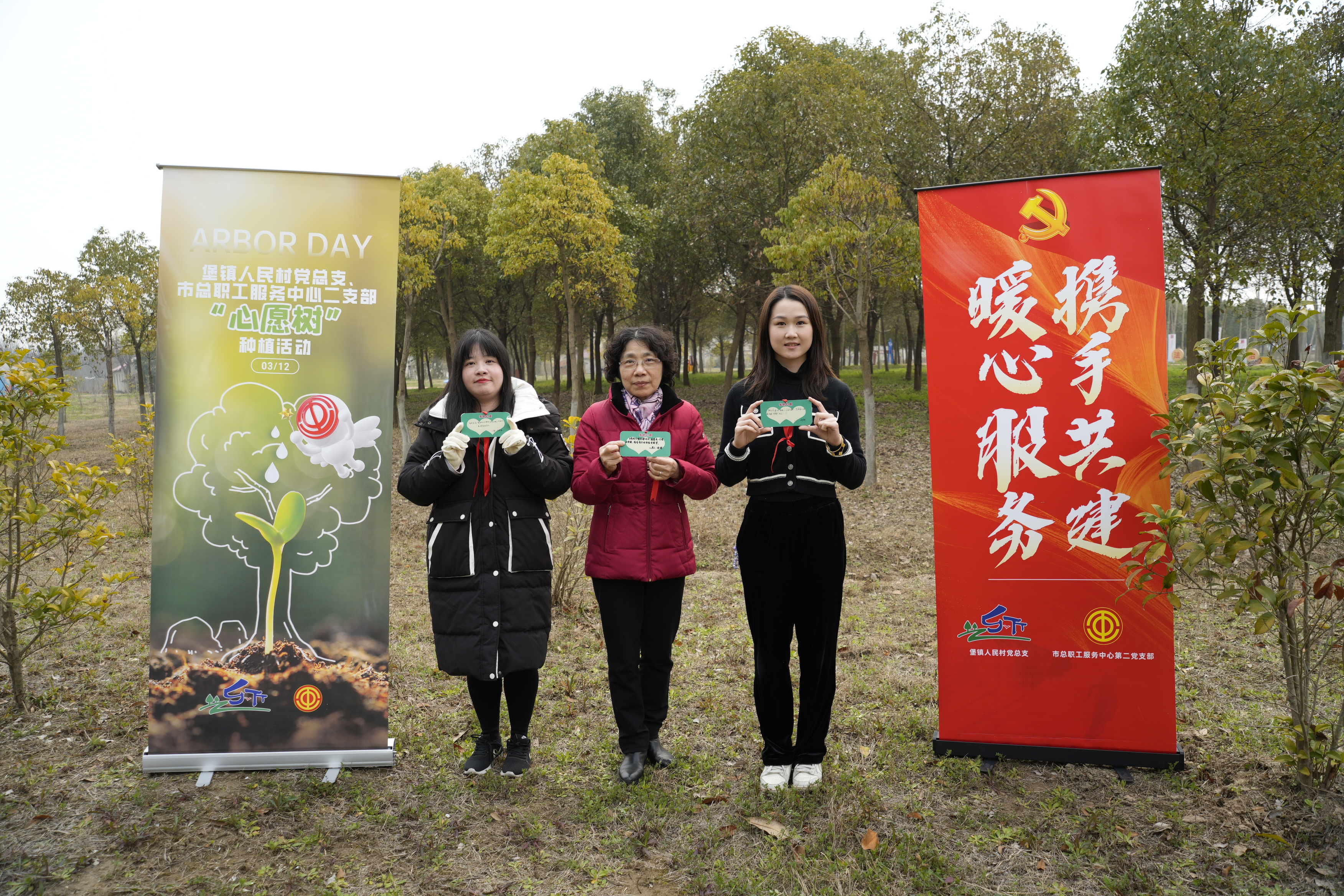 活动中,第二党支部和基金会一起种下了一棵棵红叶石楠树苗,这里将成为工会和村的共建林,象征着结对互助,爱心共建,向上向善。大家既感受着种树劳动的快乐,又怀揣着满满的爱心浇灌树苗,期待夏秋长成缀满火红树叶的大树。同时,党员代表们将首批人民村困难家庭亲手写下的心愿卡挂在了共建树上,第二党支部和基金会当场认领了3名困难职工心愿,今后,基金会将通过共建林帮助点亮崇明困难职工“微心愿”。