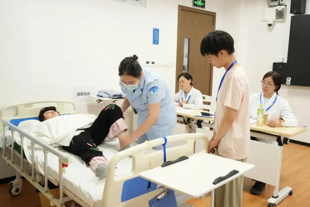 “您看,屈膝时要注意力度,配合老人呼吸节奏……”选手们一边规范操作,一边用通俗易懂的语言向模拟家属讲解动作要领、注意事项及训练意义。记者获悉,竞赛紧扣老年护理核心需求,在理论考试中,围绕老年常见病护理、康复知识、应急处理等内容展开;技能操作环节则聚焦“家属培训指导”场景,要求选手现场示范并讲解老年人下肢被动活动训练的操作要点。